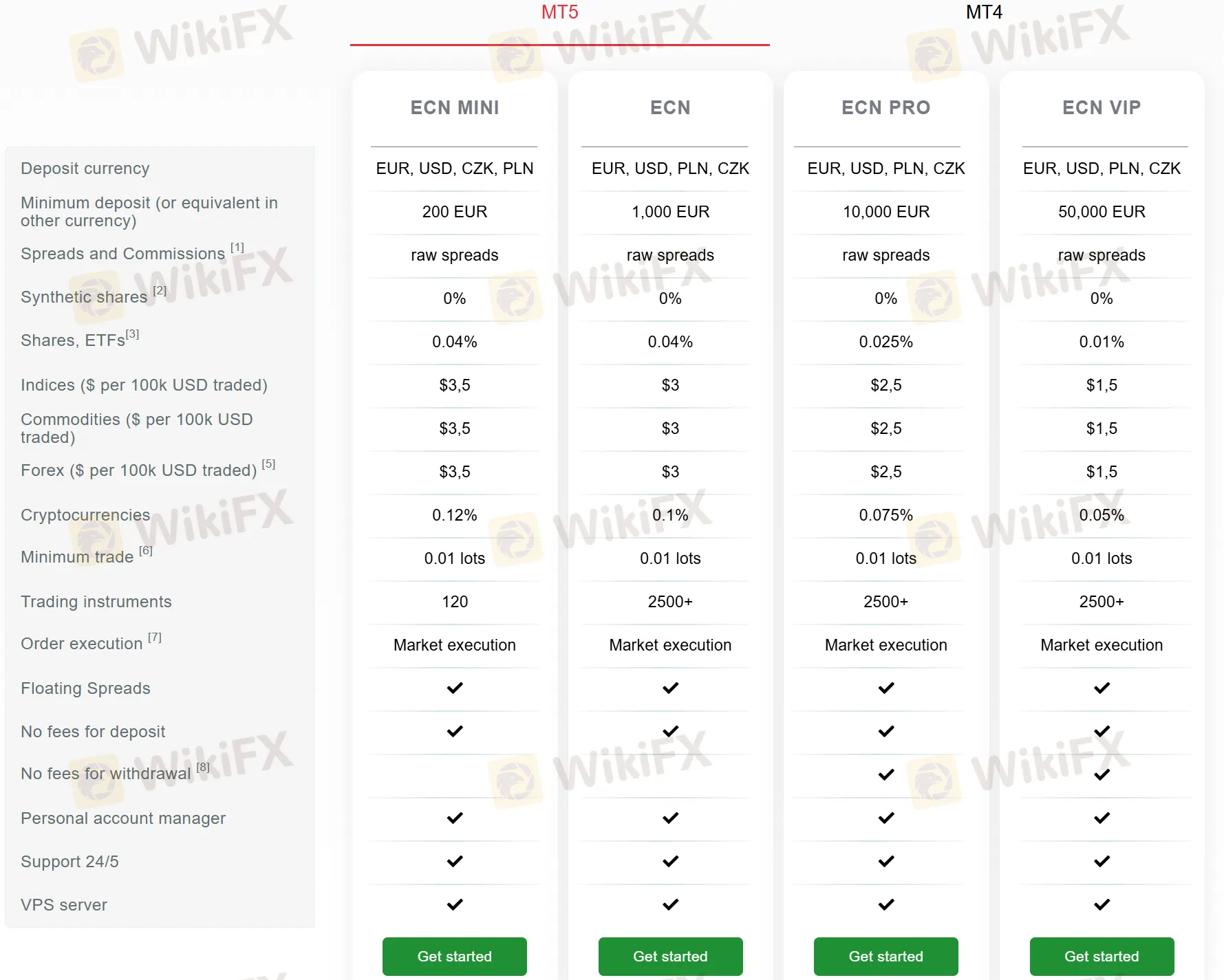 A2: €200 for ECN Mini; MT5 ECN VIP requires €50,000.