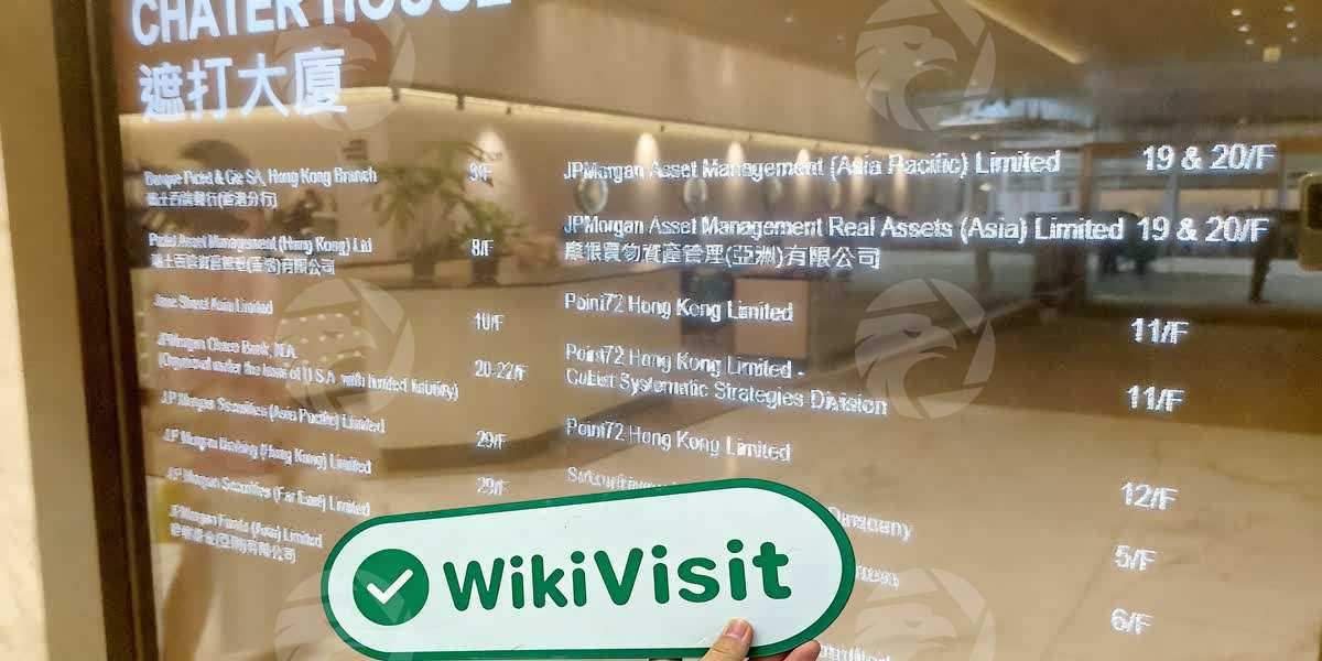 The field investigator proceeded to Chater House, 8 Connaught Road Central, Central, Hong Kong, based on the address information, to conduct an on-site verification of the broker J.P. Morgan claimed to be located at this address.
