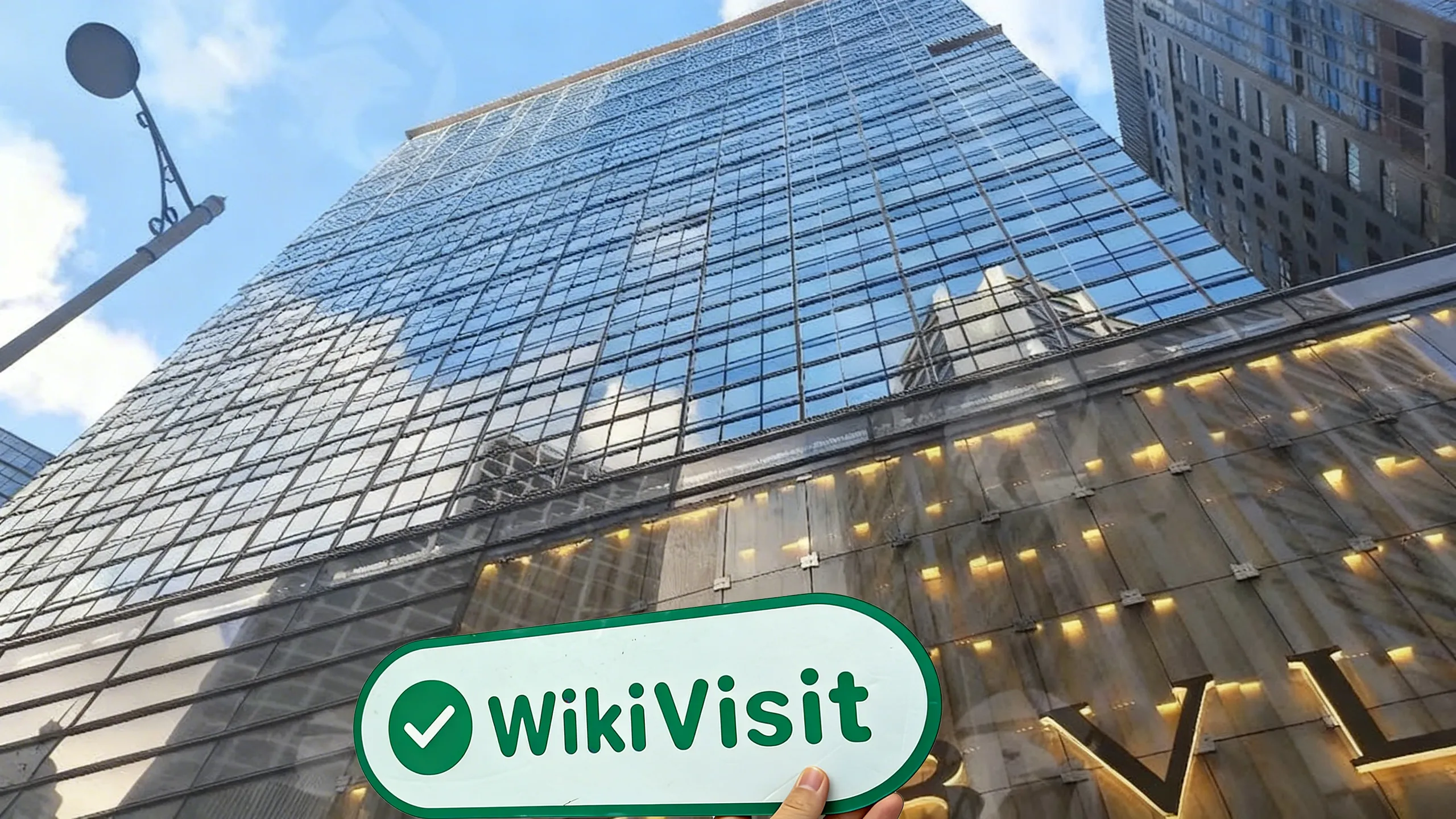 Due to the lack of an appointment, the surveyor was unable to access the target floors (23-29) and could not observe whether there were any prominent signs in the J.P. Morgan office area. The surveyor could not enter the interior and was unable to photograph the reception area or the logo at the front desk. This office is not a shared workspace.