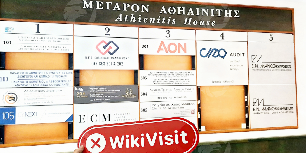 El 1 de marzo de 2024, los investigadores llegaron a la Avenida Kennedy 8 en Nicosia, la capital de Chipre, para visitar la oficina del corredor, y ubicaron el Edificio Athienitis, una estructura de 5 pisos al lado de la calle en el centro de la ciudad. Gracias a la fabulosa ubicación, el edificio cuenta con un transporte conveniente y fácil acceso a diferentes lugares, lo que atrae a un flujo constante de personas cercanas.