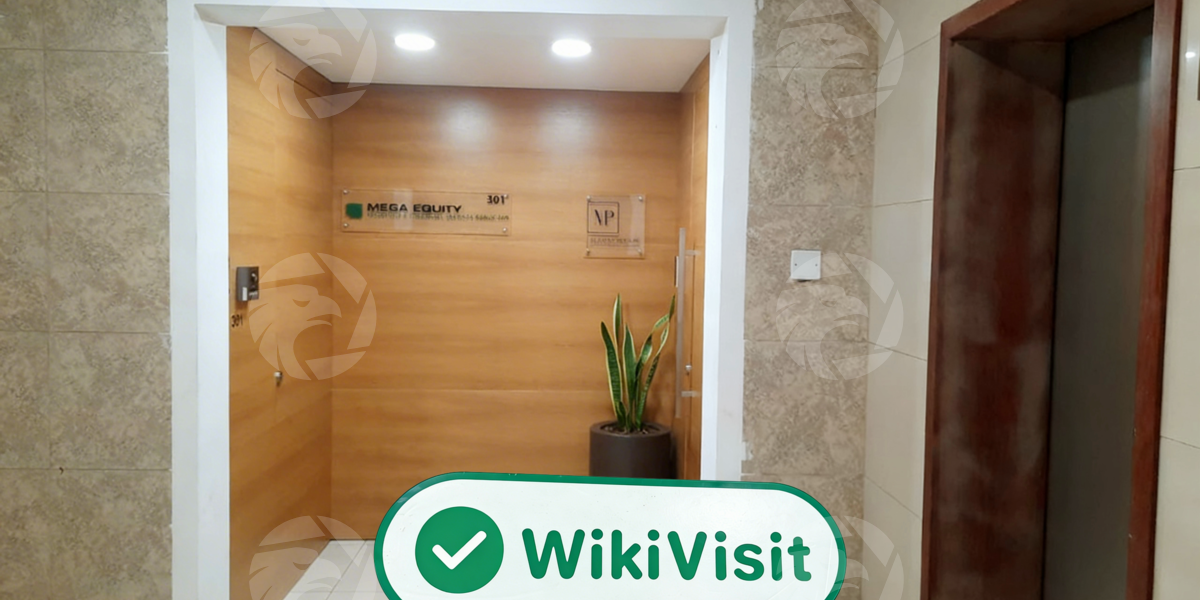 जांच के लिए इमारत पर पहुंचने पर, सर्वेक्षण कर्मचारी स्पष्ट रूप से बाहर MEGA EQUITY कंपनी का नाम और लोगो देखा।