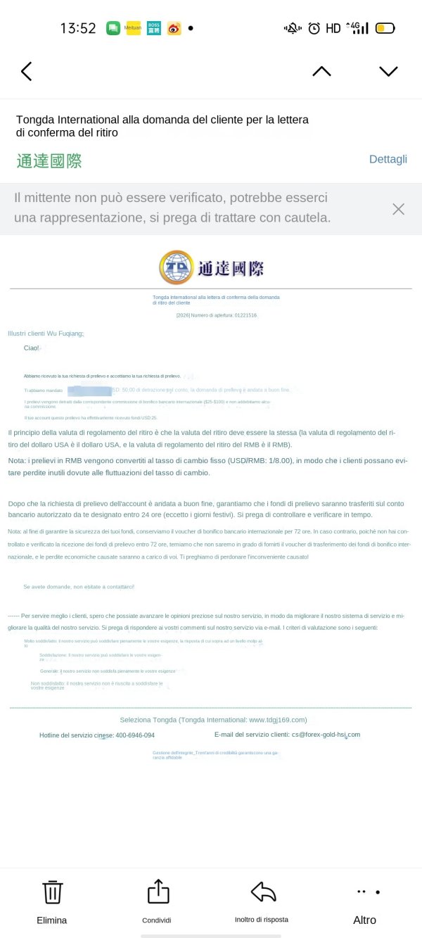 Inizialmente, il 15 gennaio, l'assistente Maria Rodriguez mi ha aiutato con l'acquisto e la vendita. Tuttavia, dopo un mese, mi ha informato che devo acquistare un abbonamento per un'IPO del valore di $50.000—qualcosa che non aveva mai menzionato prima. Ora, il denaro che ho investito è stato congelato. Non posso prelevarlo o effettuare alcuna transazione.