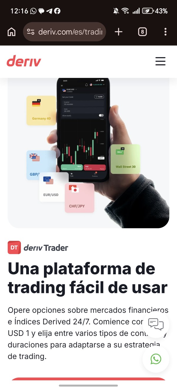 Deriv は、外国為替、指数、株式、商品、暗号通貨、ETFで取引を提供する規制されたブローカーであり、外国為替では最大1:1000のレバレッジと、Deriv MT5、Deriv X、Deriv cTrader、Deriv Trader、Deriv Bot、Deriv GO、およびSmartTrader取引プラットフォームで0ピップからのスプレッドを提供しています。最低入金額はわずか$5です。