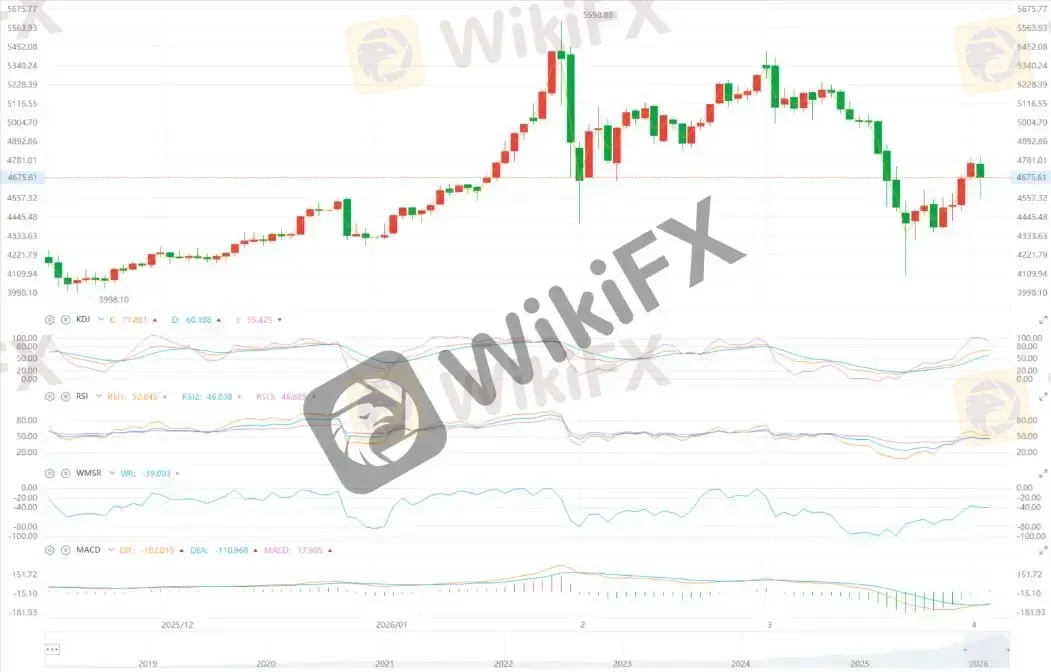 ดัชนี RSI บ่งชี้ว่าหากไม่สามารถกลับขึ้นเหนือ 4,695 ได้ ความเสี่ยงในการหลุดระดับ 4,580 ยังคงสูง โมเมนตัมระยะสั้นกำลังอ่อนตัวลง