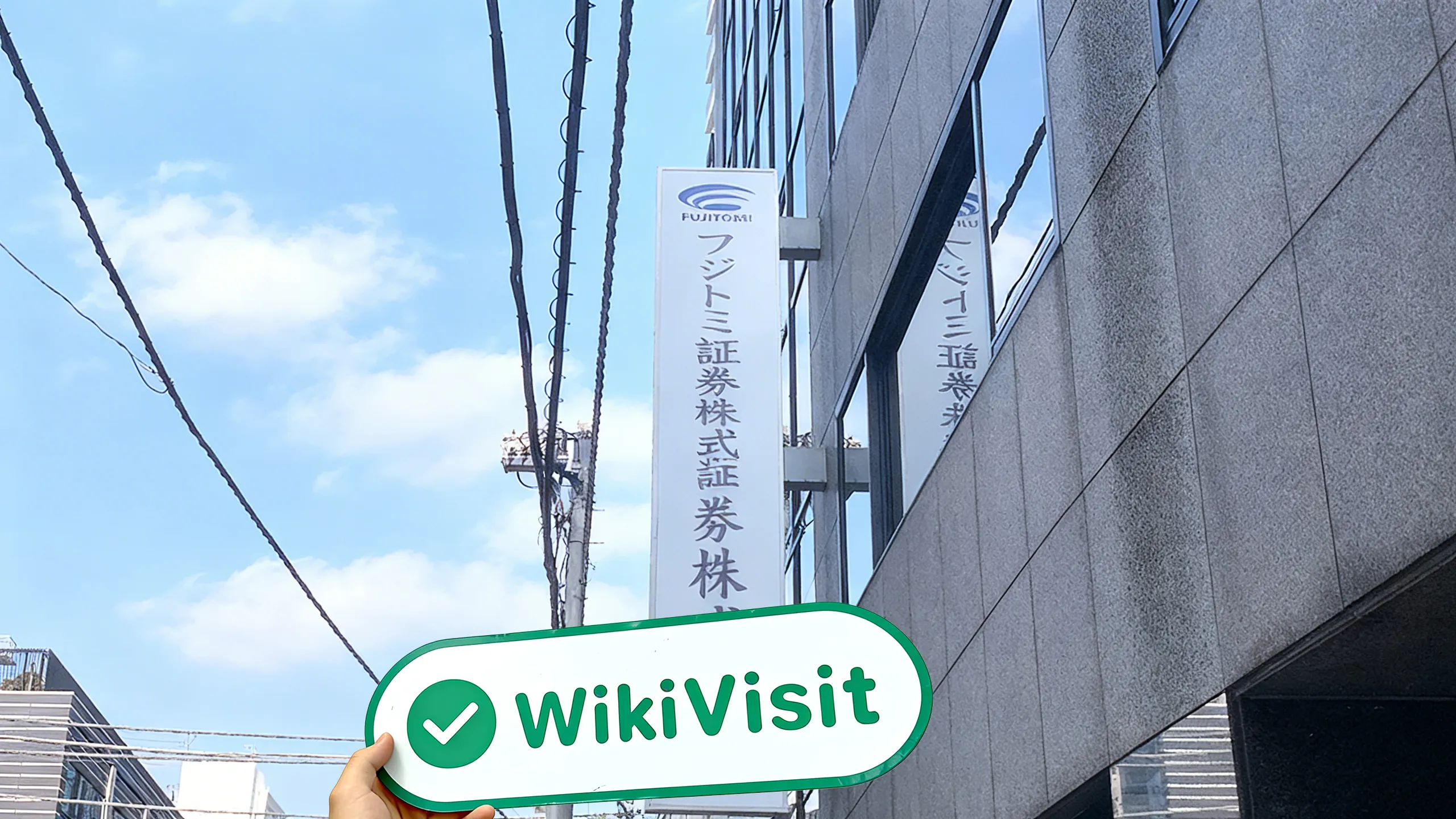 nhân viên khảo sát đã đến đích của cuộc khảo sát hiện tại theo địa chỉ trên. logo của FUJITOMI Chứng khoán treo bên ngoài một tòa nhà, và nó cũng được in trên cửa kính ở lối vào chính. do có dịch nên nhân viên khảo sát không được vào văn phòng nên không thể chụp ảnh nội thất công ty.