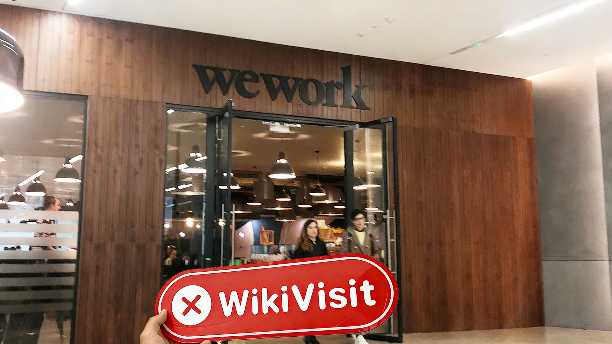 Vì vậy, các nhân viên đã đến phía bên kia của tòa nhà văn phòng "MOOR PLACE" và thấy logo "WE WORK" được cố định trên bảng nền gỗ. Các nhân viên sau đó đã đến quầy lễ tân và biết được rằng HUGE không có văn phòng ở "MOOR PLACE".