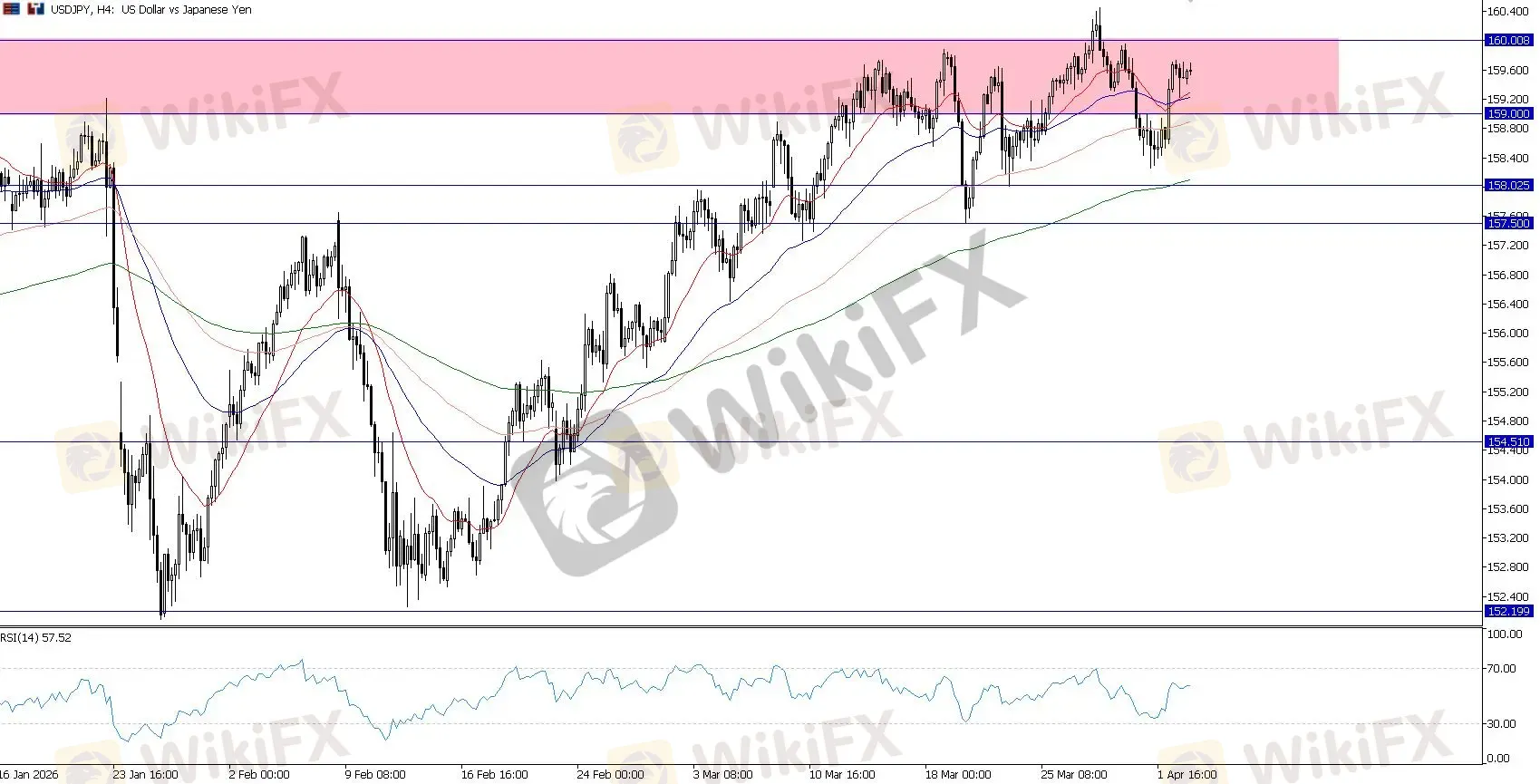 日元依然受困于极其危险的基本面交火之中。由于美日之间巨大的收益率差继续压垮日元,USDJPY 货币对正在激进地测试极具爆发力的 160.00 心理关口。