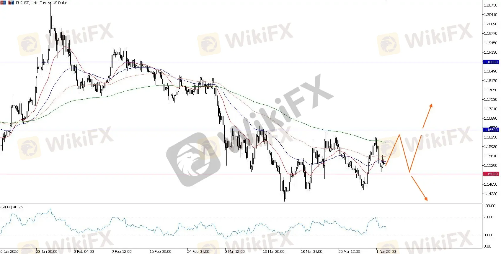 与此同时,欧元正在绝望地为生存而战。EURUSD 货币对直接在关键的 1.1500 结构性支撑底上演了一场脆弱的防御。虽然粘性的欧元区通胀数据提供了一条暂时的基本面生命线,但欧元今日的命运完全取决于美元。