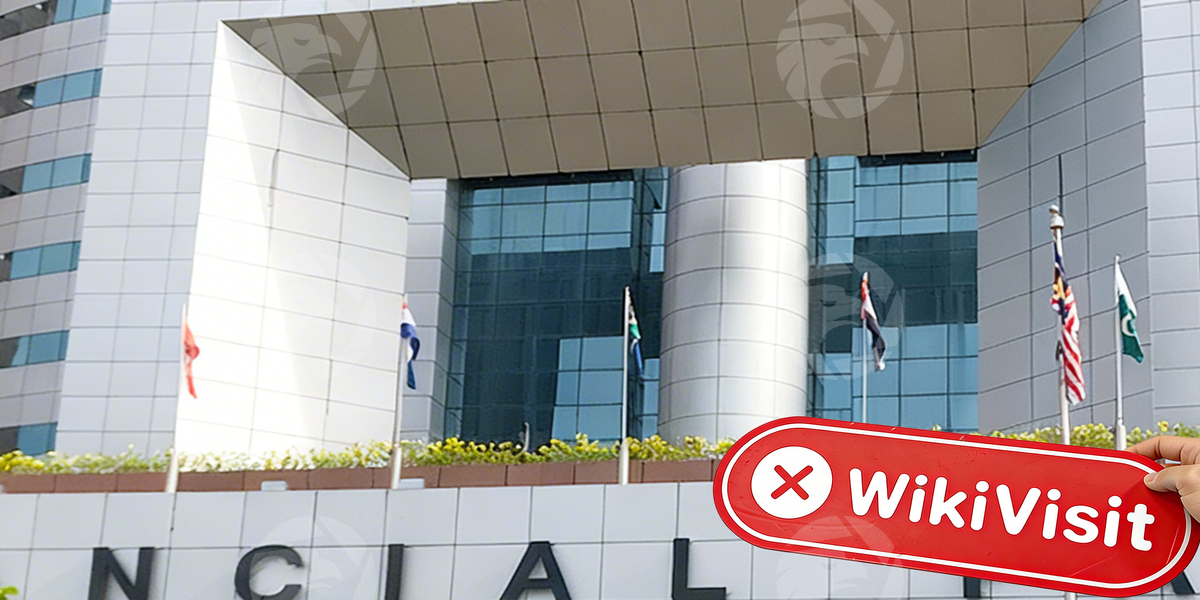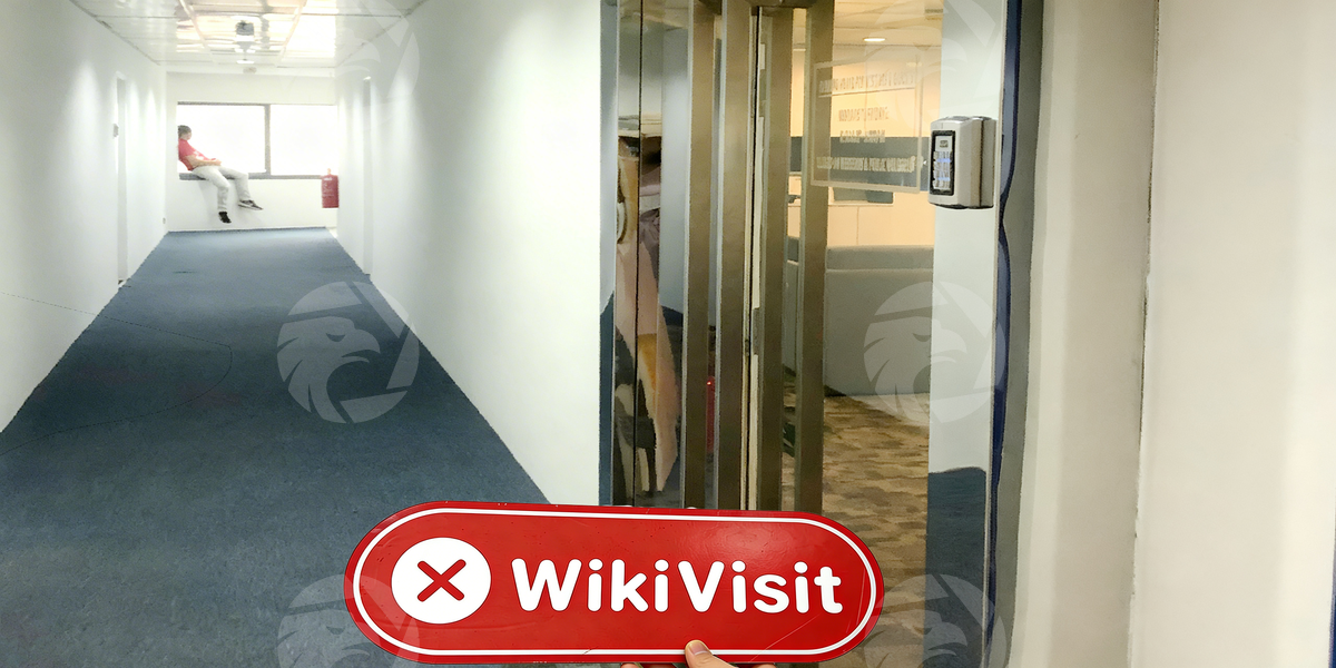 在監管信息與地圖導航的指引下,實勘人員沿著Jjalan Merdeka街往前走,一棟白色的建筑進入了實勘人員的視線。這就是實勘人員要找到的Financial Park Complex。實勘人員注意到,這棟辦公樓外掛著多國國旗。毗鄰一個購物中心,這棟17層高的辦公樓是拉布安小島最高的辦公樓。這棟辦公樓有些年代,而且每層樓的式樣大同小異。